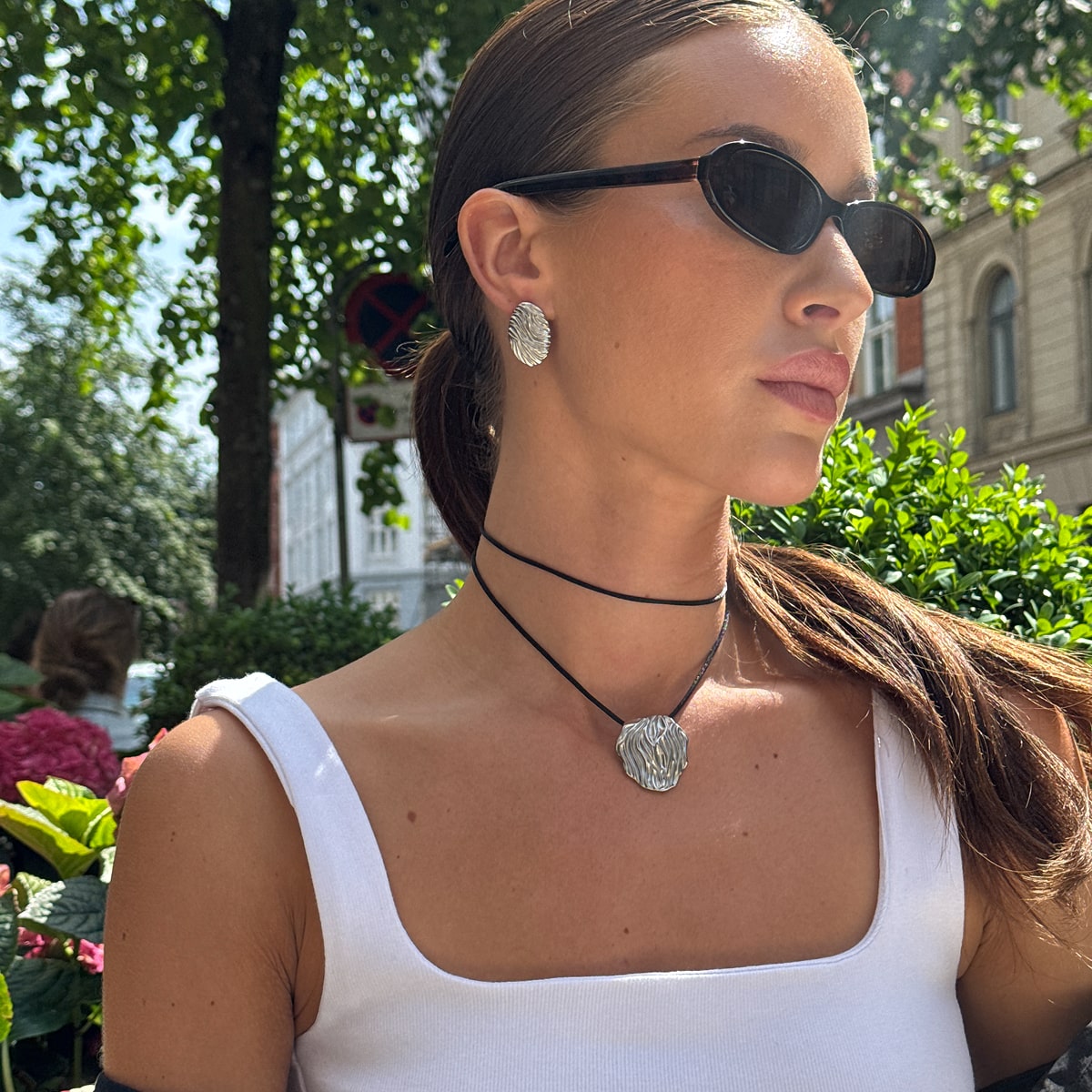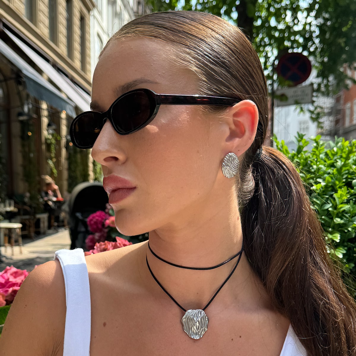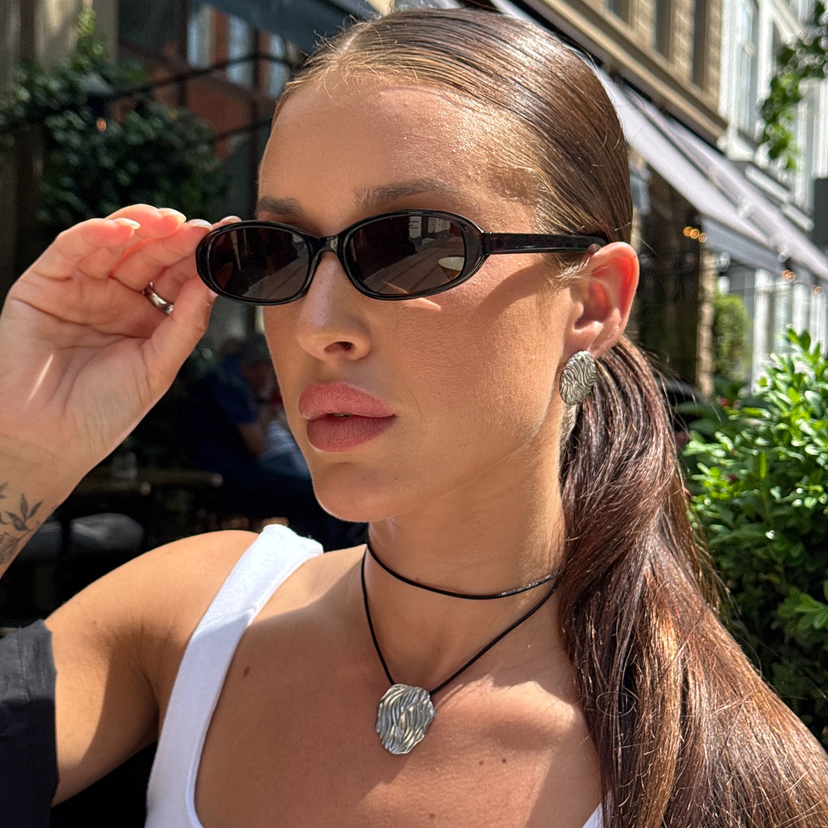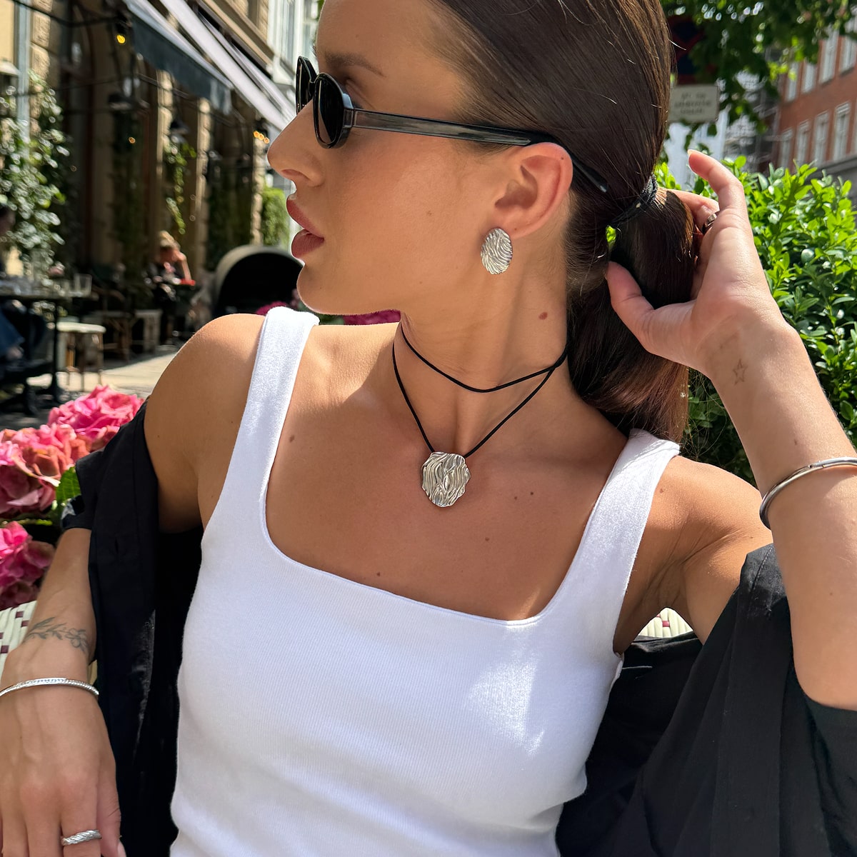 Hvis du eksempelvis har en af mine fede panserkæder og hamret halskæde, kan du style det med en matchende hamret kæde øreringe og classic hoops - det vil matche og se mega godt ud! Det kan også være, at tøjet gør det hele i sig selv, og alt du mangler er en simpel ankelkæde eller to.