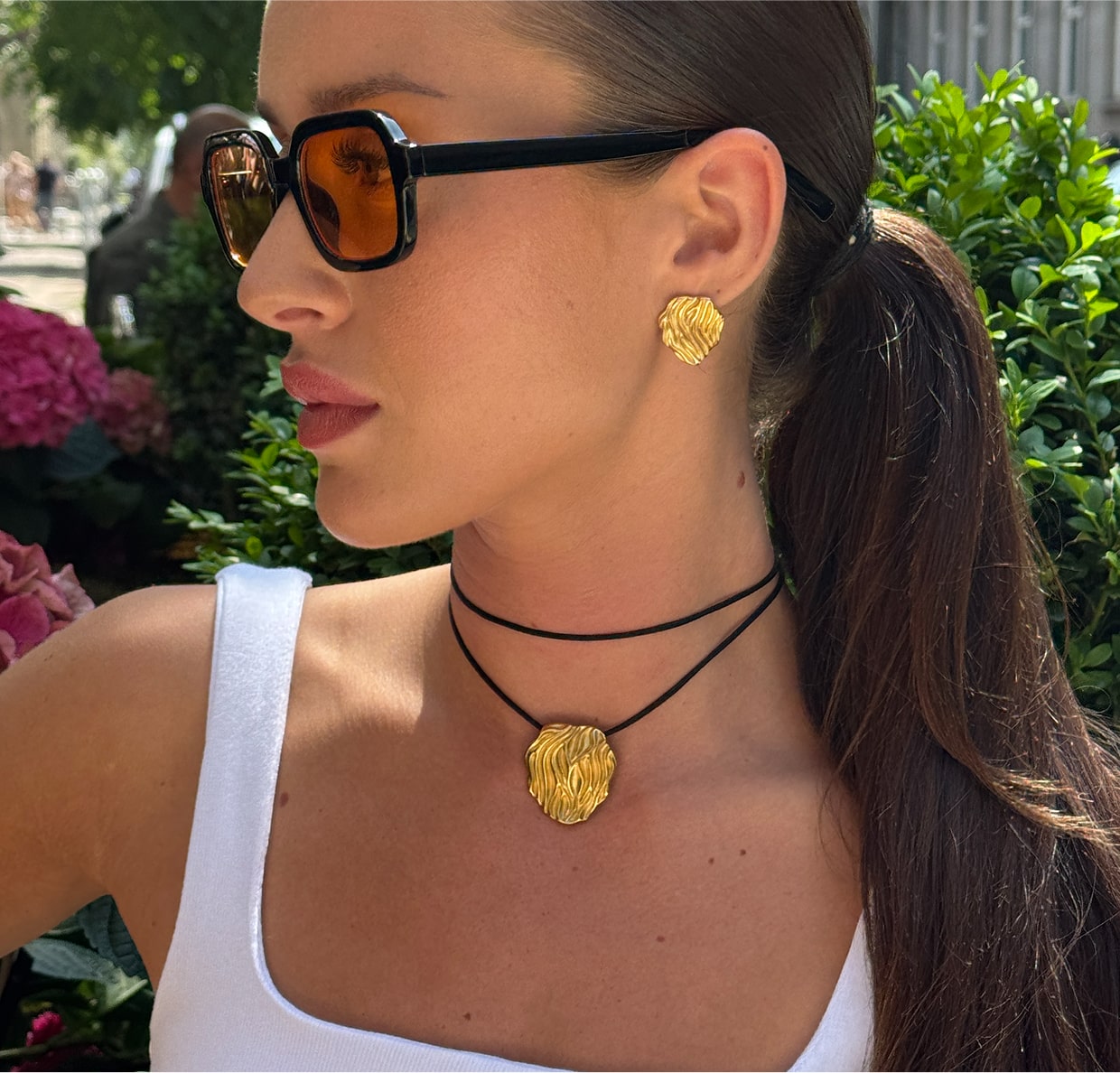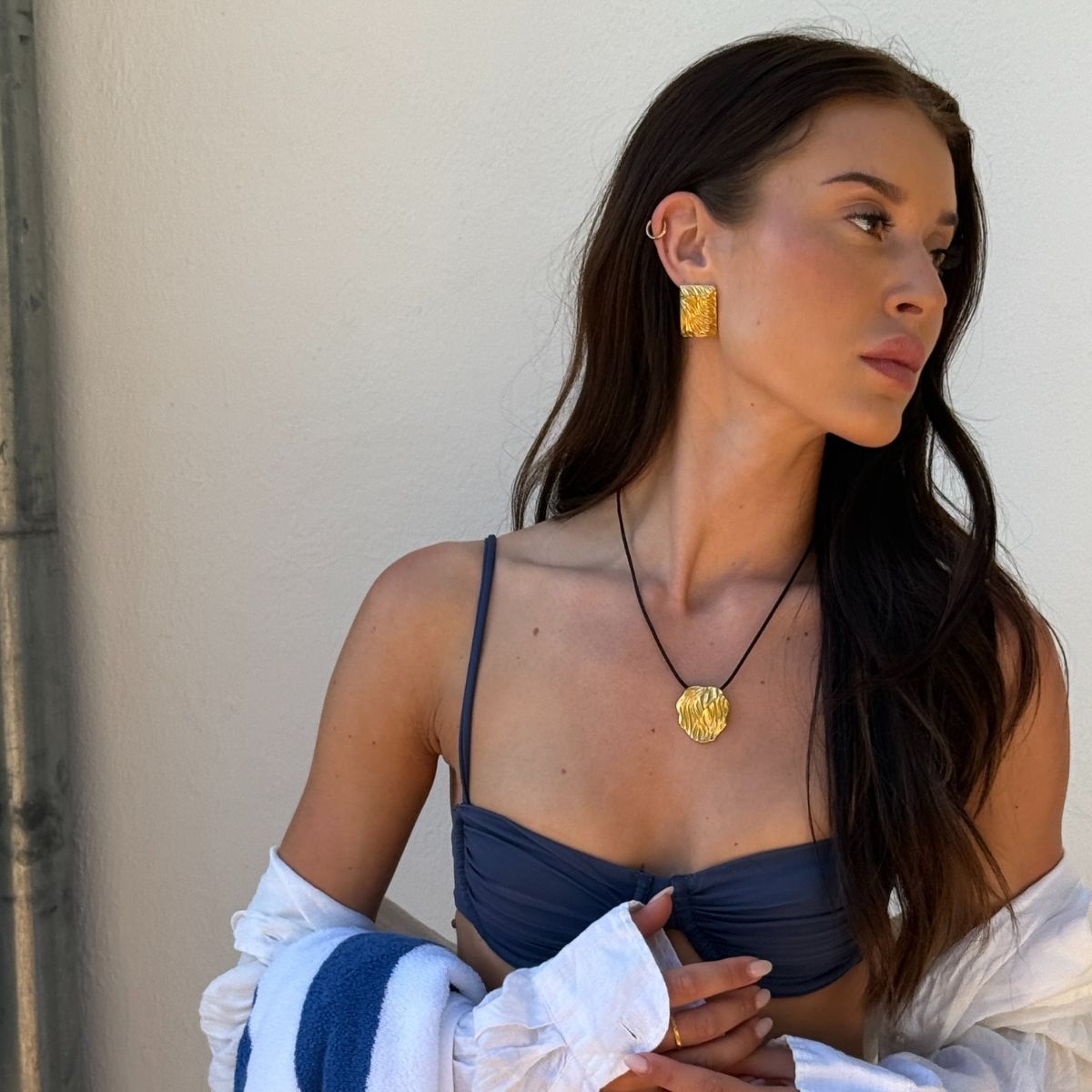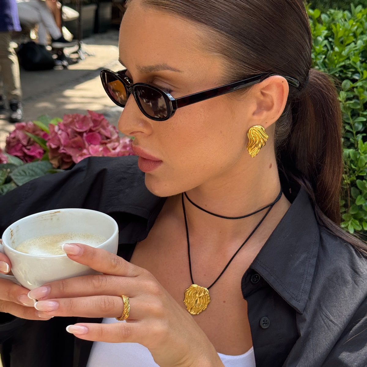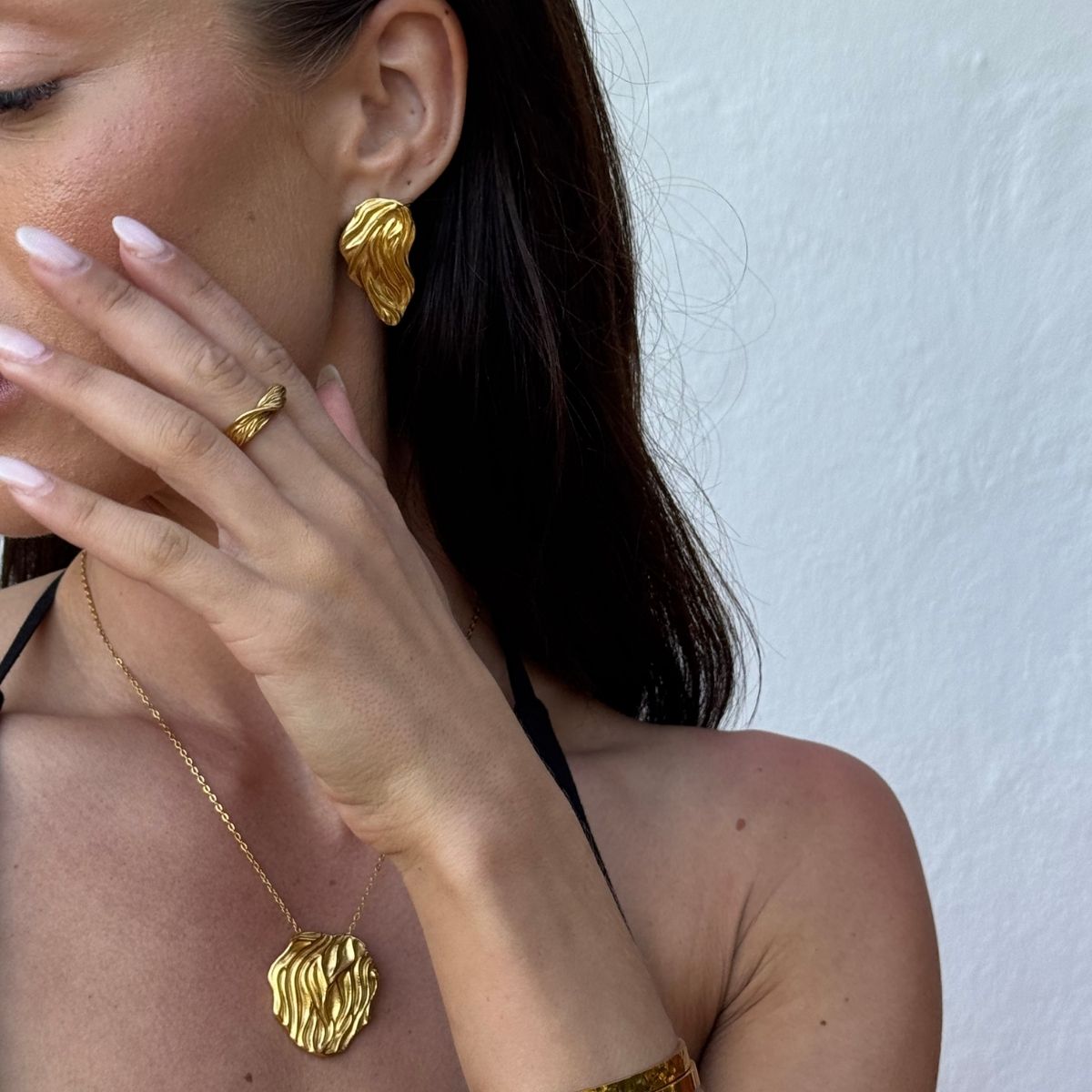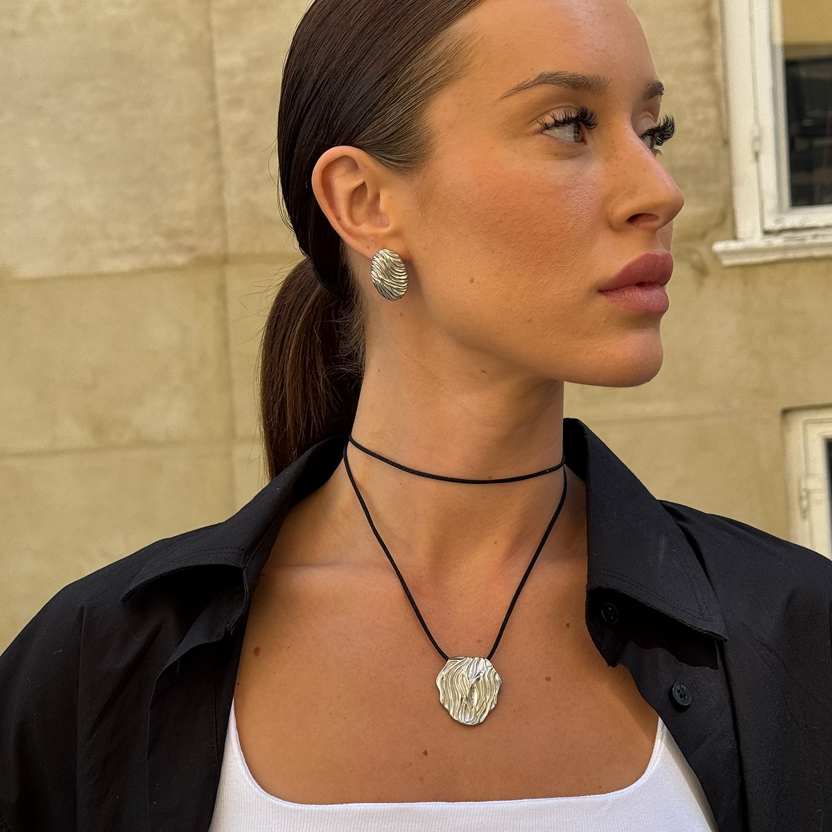 Hvis du eksempelvis har en af mine fede panserkæder og hamret halskæde, kan du style det med en matchende hamret kæde øreringe og classic hoops - det vil matche og se mega godt ud! Det kan også være, at tøjet gør det hele i sig selv, og alt du mangler er en simpel ankelkæde eller to.