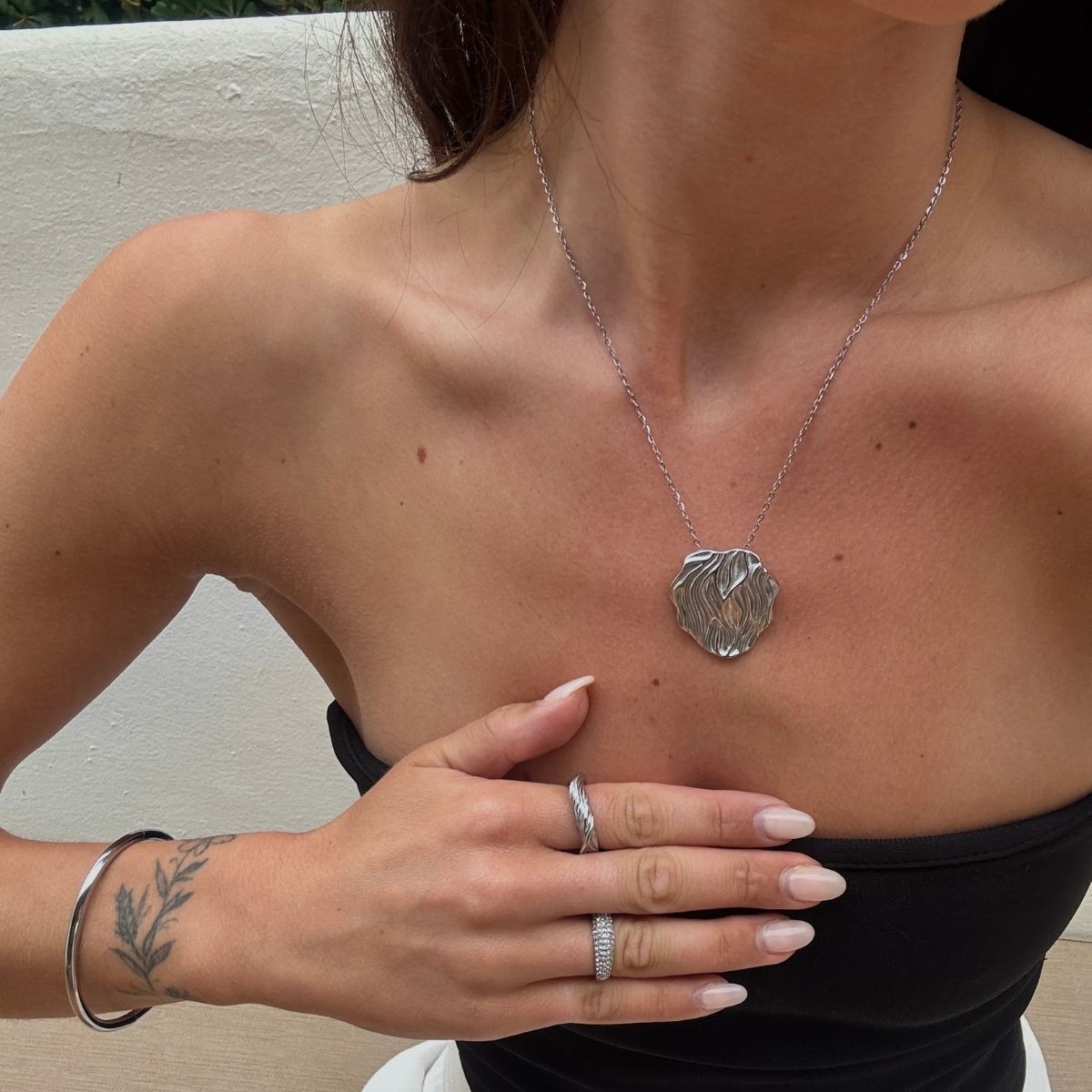 Hvis du eksempelvis har en af mine fede panserkæder og hamret halskæde, kan du style det med en matchende hamret kæde øreringe og classic hoops - det vil matche og se mega godt ud! Det kan også være, at tøjet gør det hele i sig selv, og alt du mangler er en simpel ankelkæde eller to. Eksempelvis panser ankelkæde i 3 mm og 7 mm - som giver blikfang.