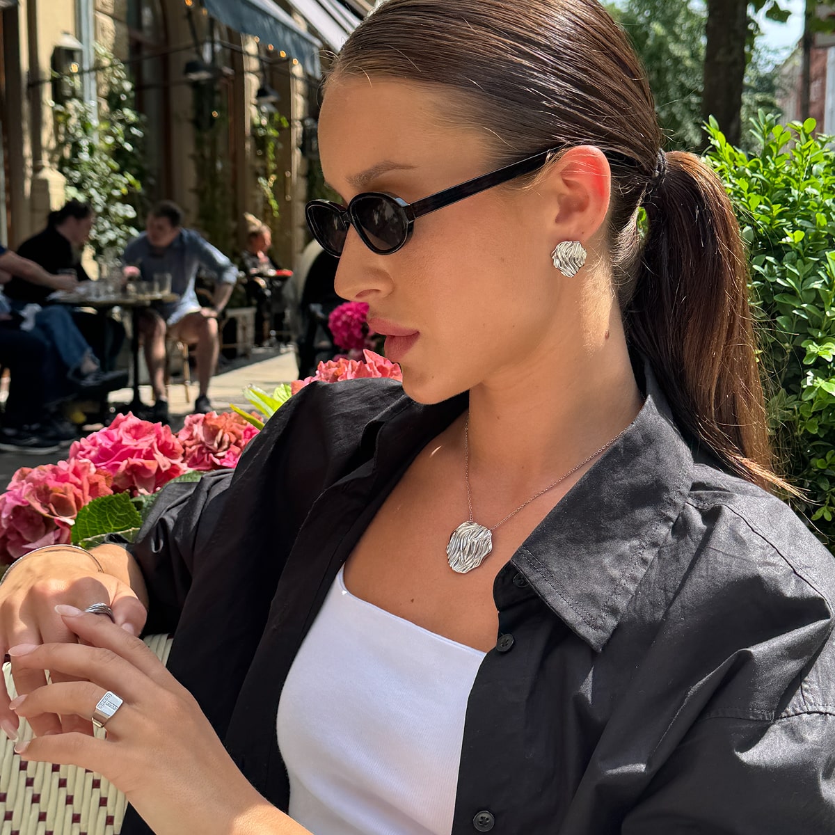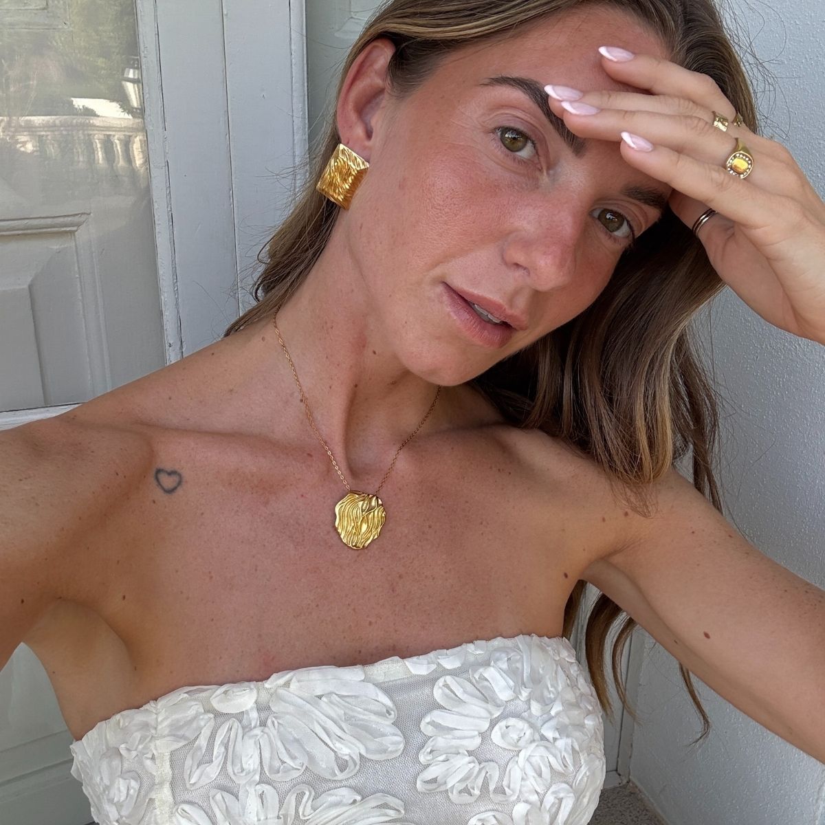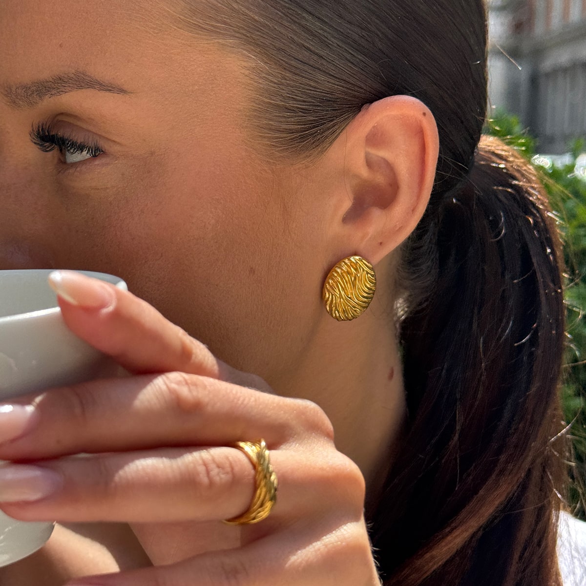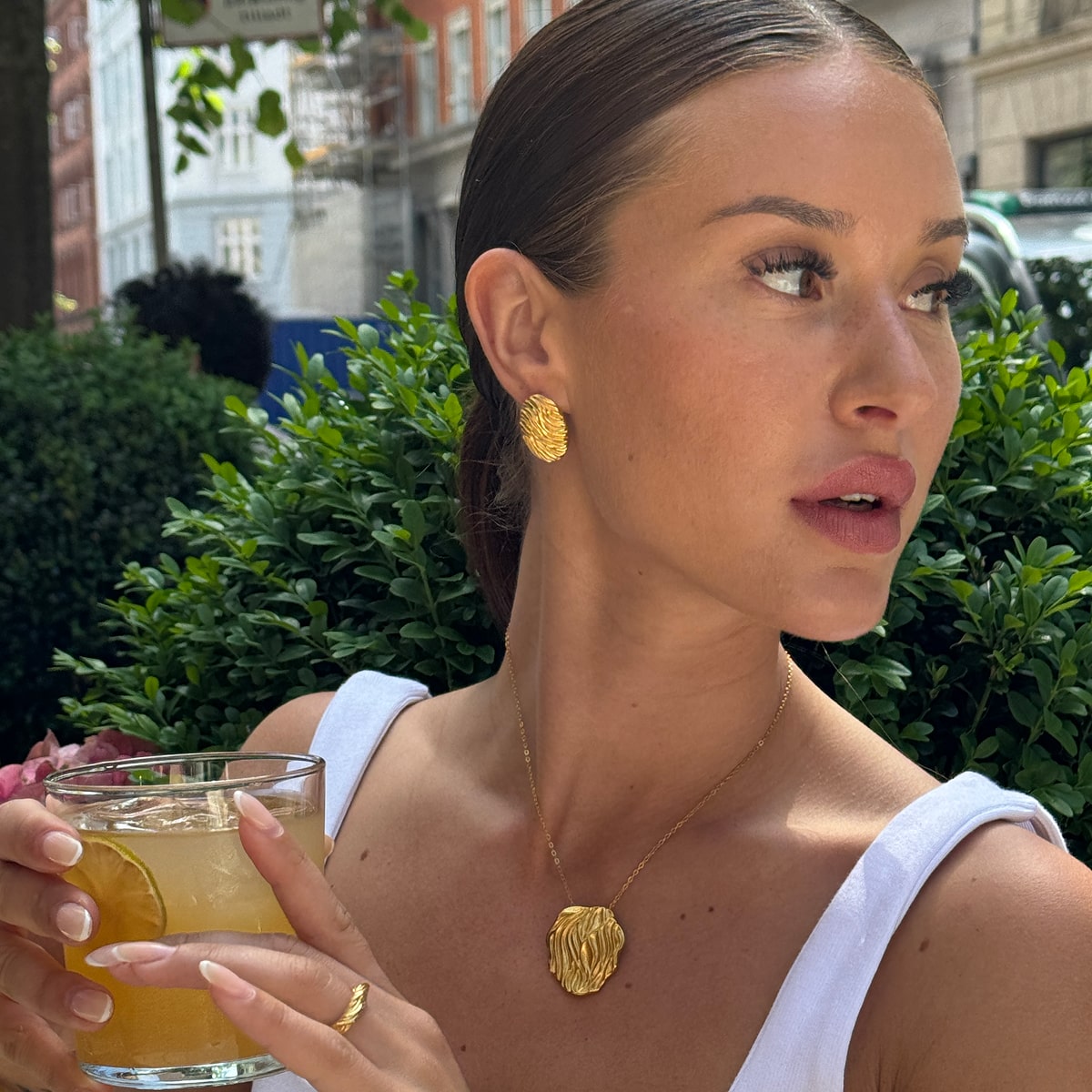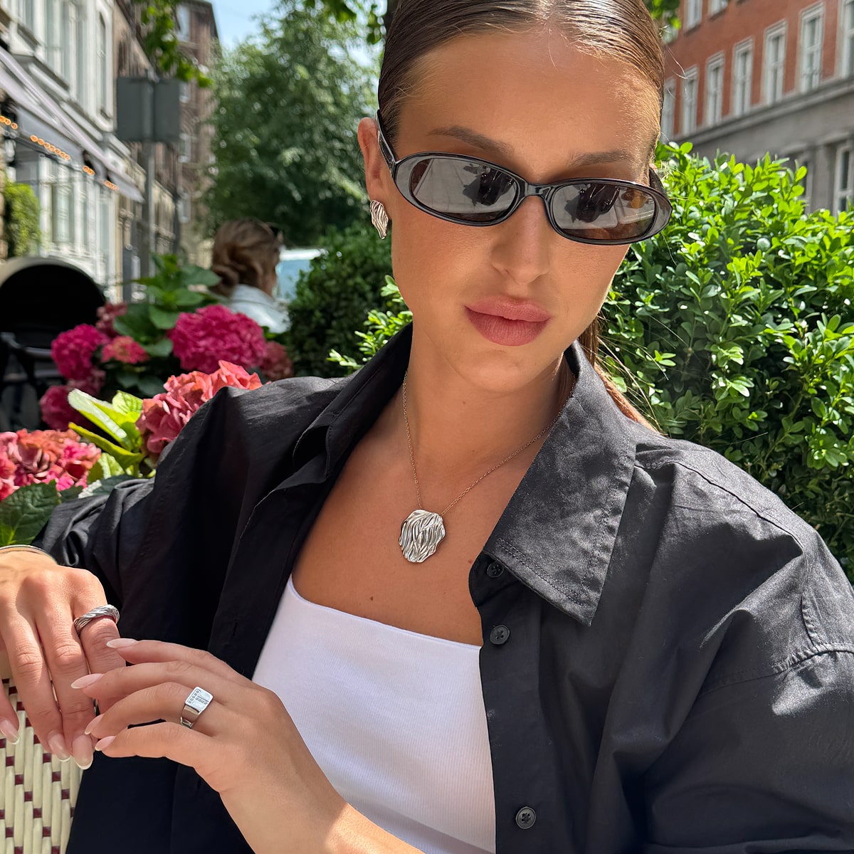 Det er nemt at foretage små ændringer, der indrammer dit ansigt dag for dag - eller uge for uge. Gå fra nogle chunky hoops, til nogle simple ørestikker langs øret, alt efter dit outfit. Jeg bruger oftest mine Classic Dome Hoops med nogle små ørestikker. Jeg er dog også blevet god til at skifte til mine Hamret Kæde Øreringe, da man kan trække dem igennem to øreringe-huller og stadig have en effekt af, at der sker meget men alligevel med et minimalistisk look.