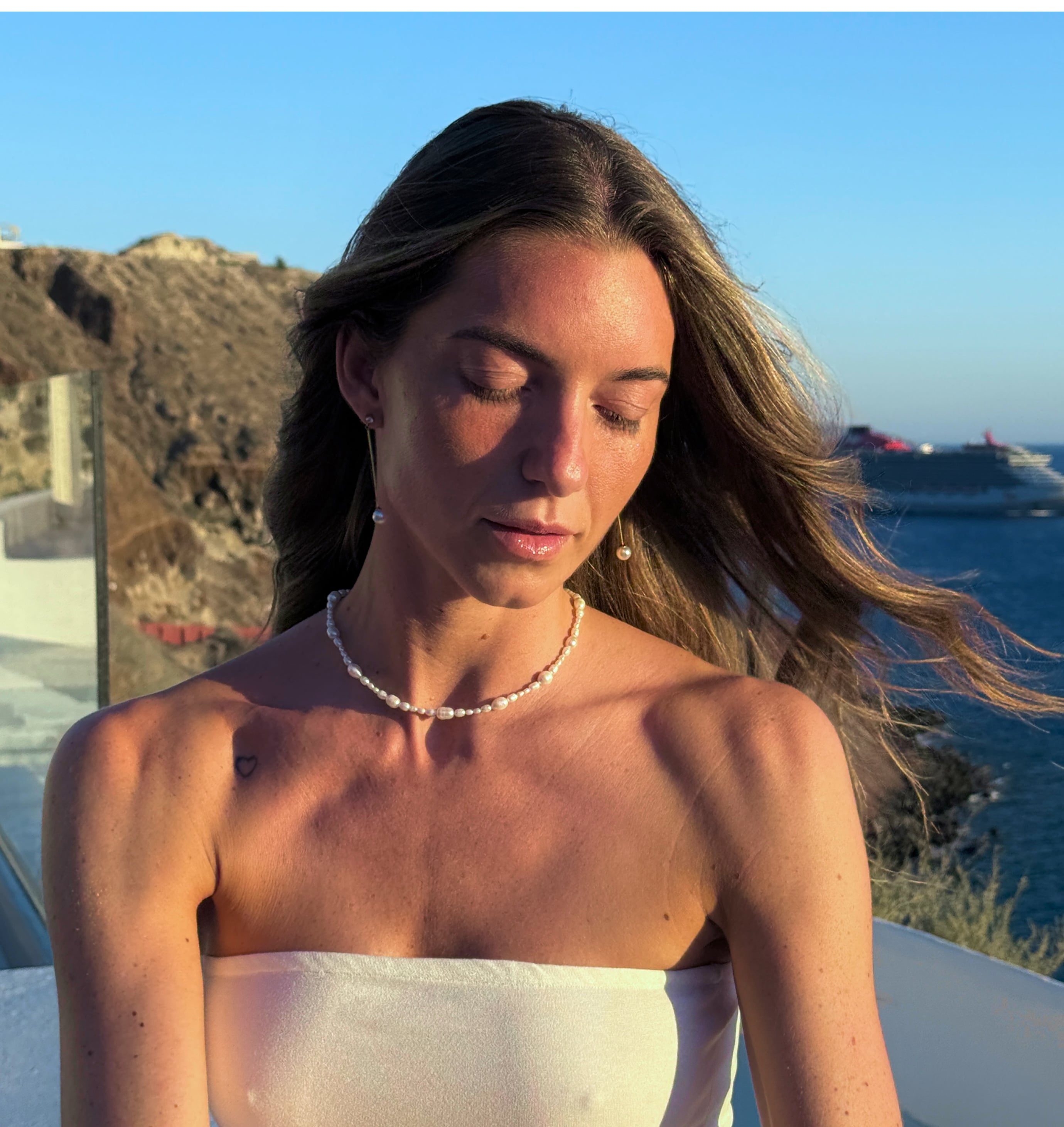 Perler har en evne til at løfte et look uden at tage opmærksomheden. Jeg elsker, hvordan de giver et roligt, fint udtryk – uanset om det er til bare skuldre, solkysset hud eller noget helt tredje.