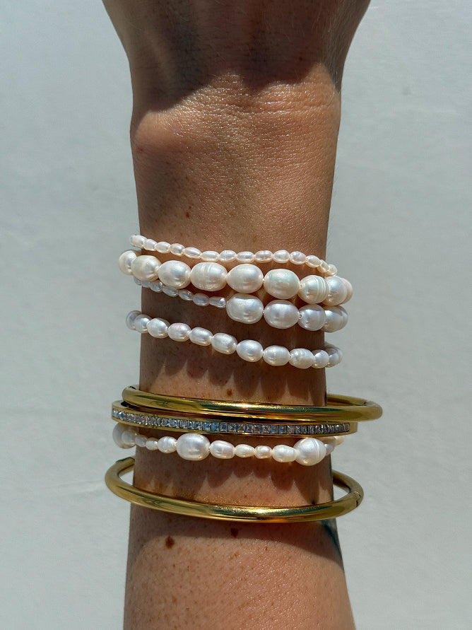 Smykkerne kan bæres enkeltvis eller kombineres alt efter stemning. De forskellige perlestørrelser gør det nemt at skabe sit eget udtryk – afslappet, naturligt og altid med et strejf af noget særligt.