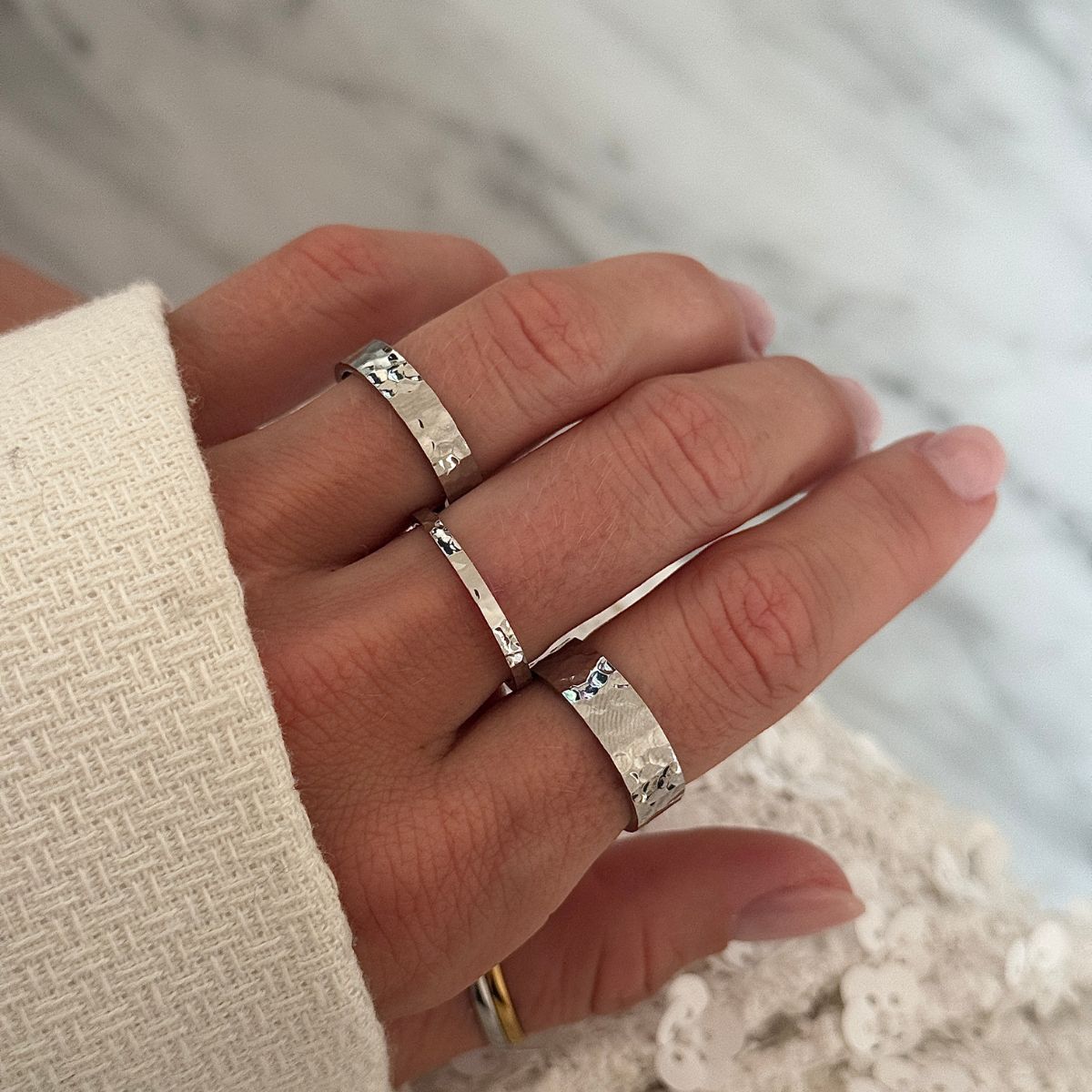 Uanset om du er til guld eller sølvfarvet finder du mine Hamret Band Ringe i begge udgaver, begge vandfaste. Med mine Hamret Smykker, er du sikker på at have et smykke der aldrig går af mode og altid tilføjer et strejf af personlighed.