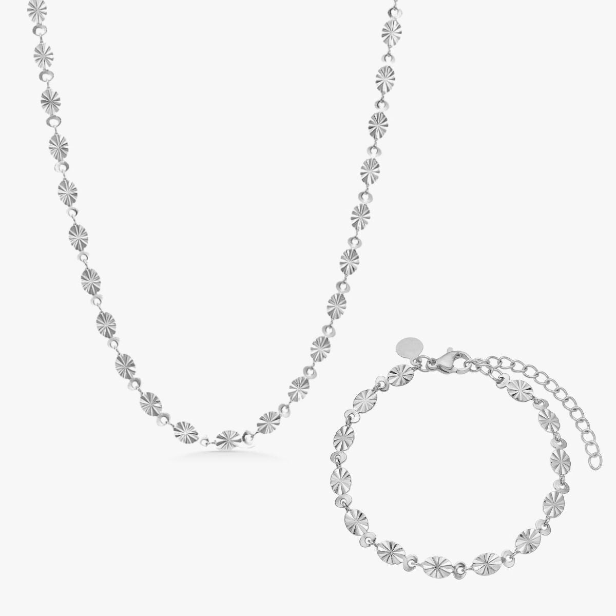 BEDST SOLGTE GAVESÆT - Simpel, men udtryksfuld kæde. Hvert led i kæden har gravering fra midten, som skaber blikfang i solens stråler når den lægger sig om din hals - Style med mit sun kiss armbånd, som funkler om dit håndled.