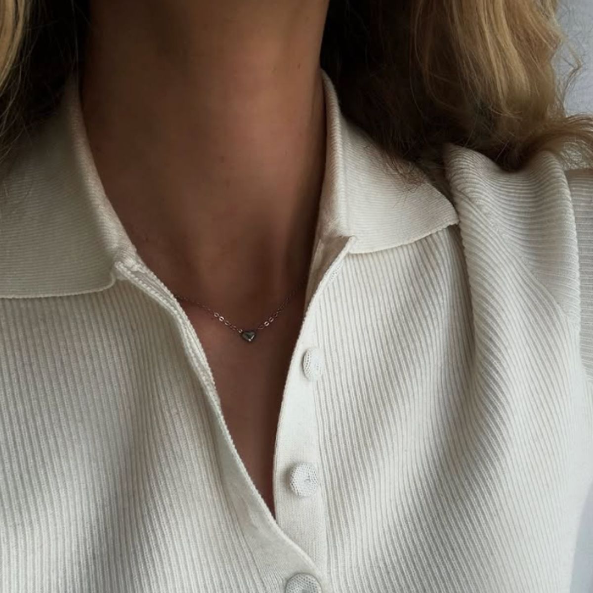 En enkel og tidløs halskæde med et lille poleret hjerte. Et elegant smykke, der kan bæres alene for et minimalistisk udtryk eller styles i lag for et personligt look – perfekt til både hverdag og særlige øjeblikke.
