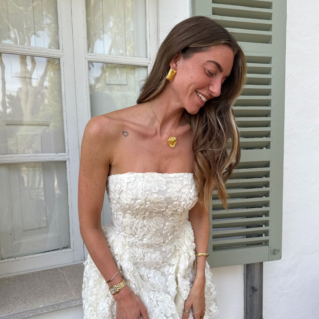 Lethed i volumen; Selvom smykkerne har størrelse og tilstedeværelse, føles de ikke tunge. De er inspireret af vindens bevægelse og har organiske former, der ikke dominerer – men følger kroppens bevægelse. Perfekte til bare skuldre, løst hår og sunkissed skin.