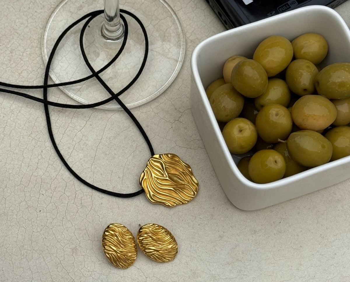 Kollektionens hjerte – en sanselig og skulpturel halskæde, der fanger essensen af vindens stille kraft. Overfladen bevæger sig som havets strøm i vinden, og smykket ændrer karakter alt efter, hvordan det bæres: på en klassisk kæde for et elegant, sofistikeret udtryk, eller med sort snor for en mere rå, moderne styling.