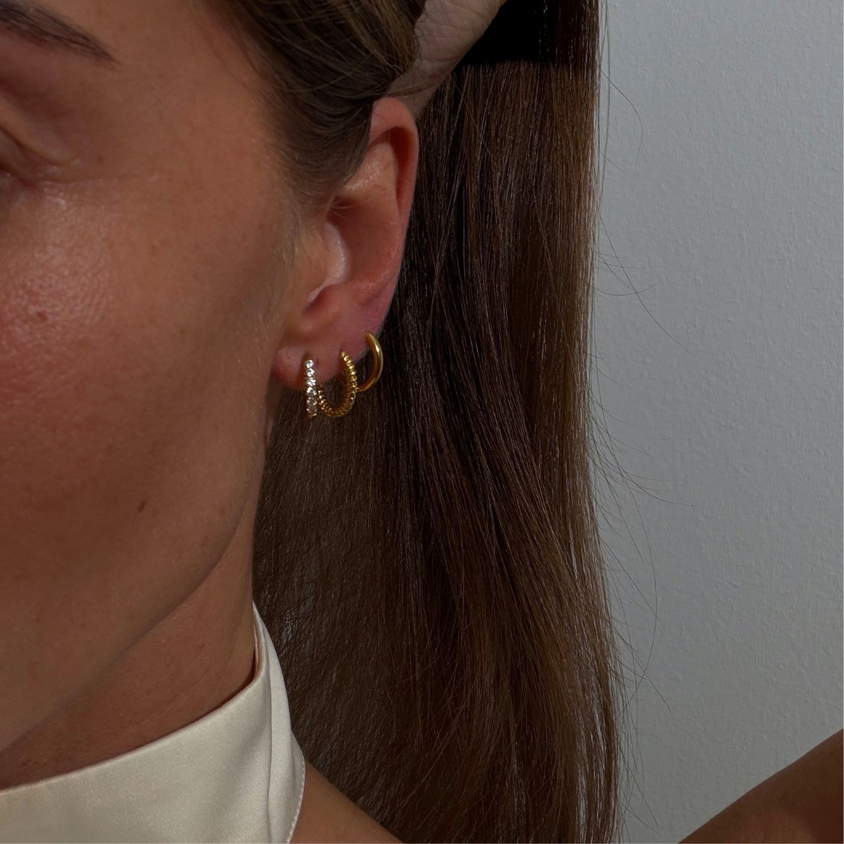 The materials range from metals like gold and silver and can be decorated with stones or designed more chunky, like my Classic Twist Dome Hoops , which offers countless styling options. You can explore them all in my Hoops collection.