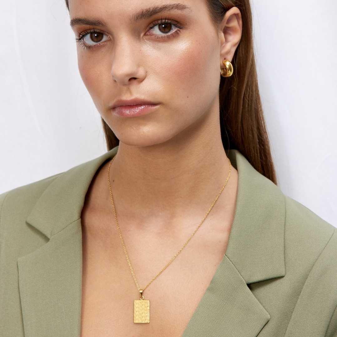 Hammered Necklace 18K Gold Plated Square Large