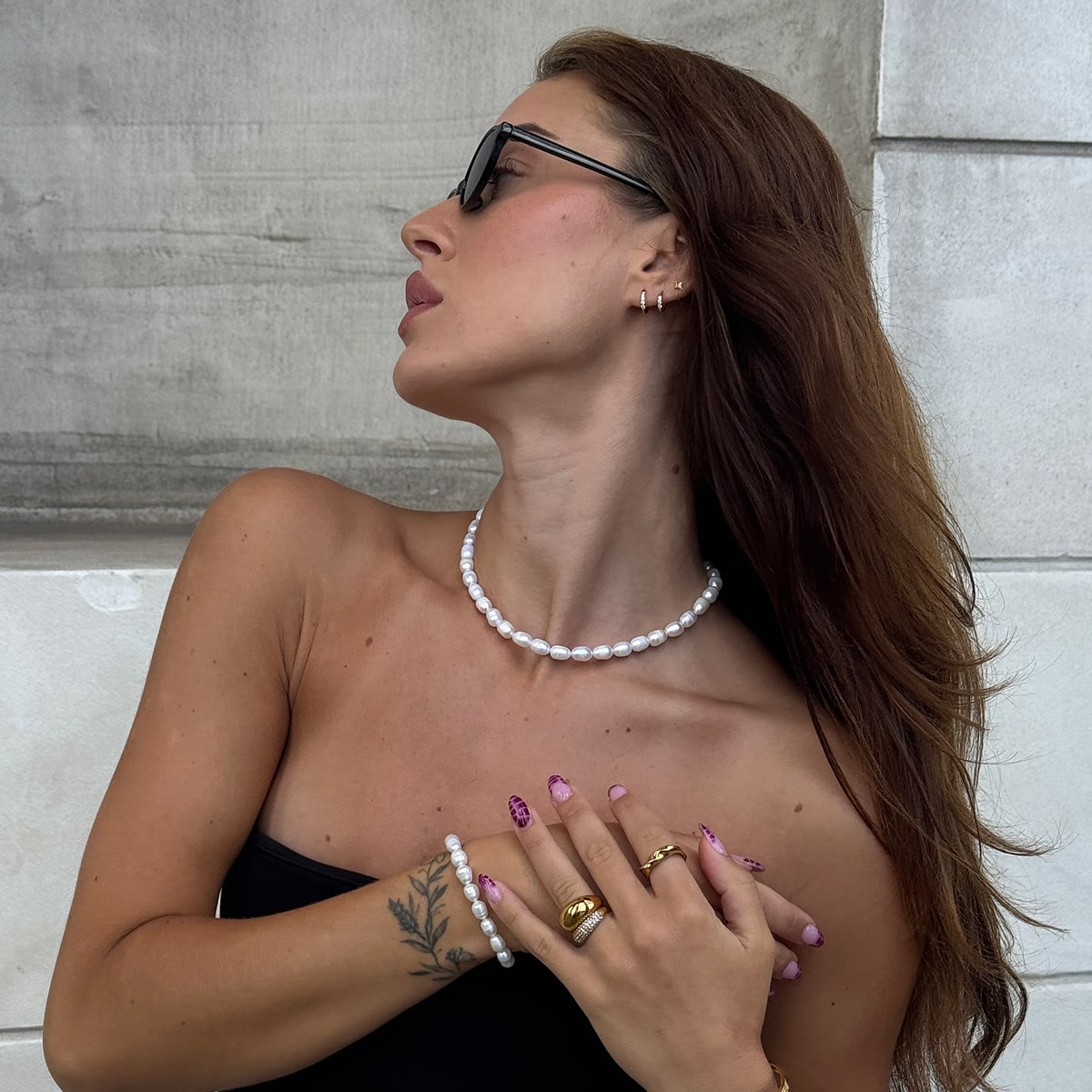 The Pearl Collection is designed to be worn, mixed and loved in your own way. The genuine freshwater pearls add a soft, organic look that contrasts beautifully with shiny metals and minimalist shapes.