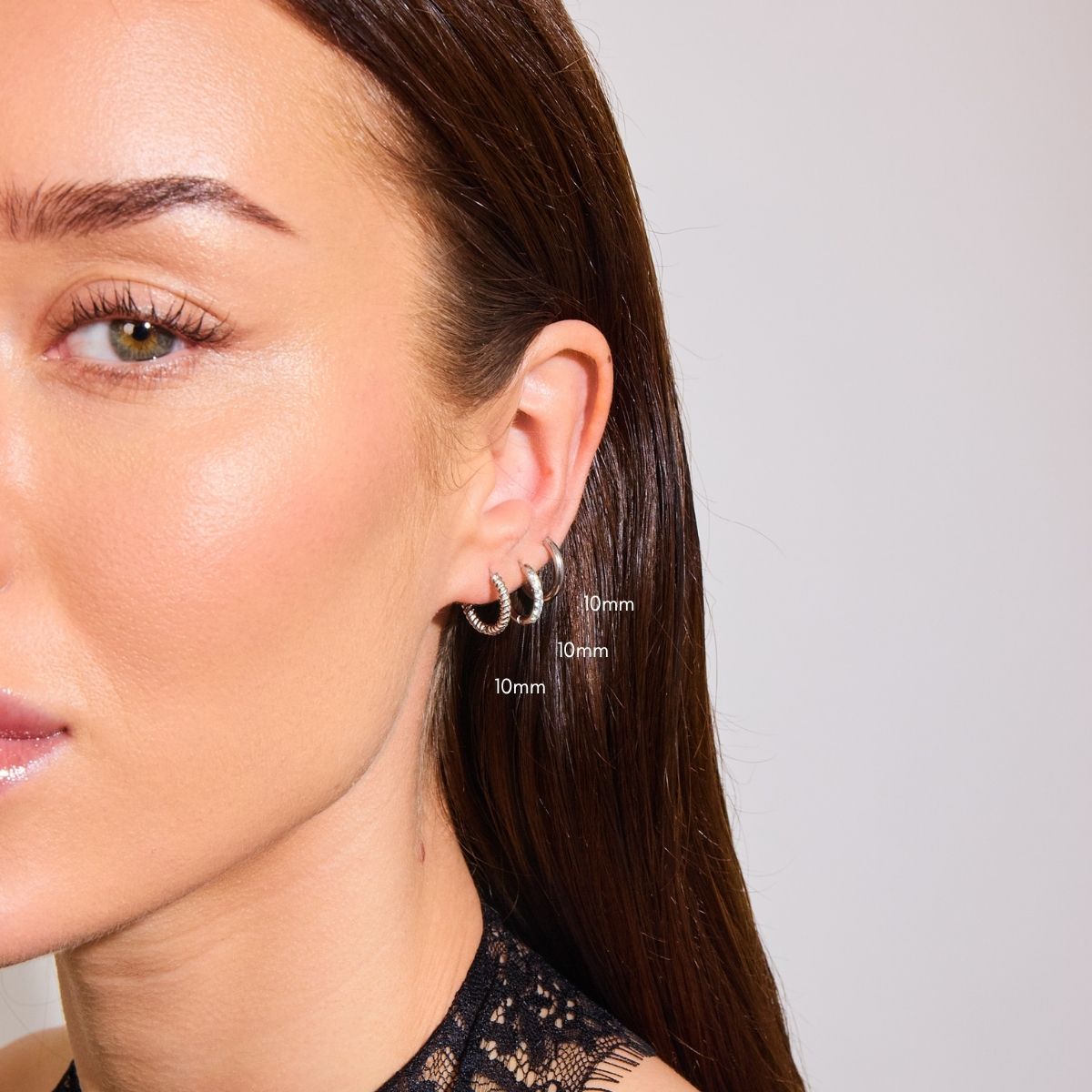 Klassisk Creol med et strejf af elegance fra krystaller på fronten. De er enkle og minimalistiske og kan mixes med andre hoops eller creoler - De kan også bruges som anvist, i den øverste del af øret som en helix piercing.