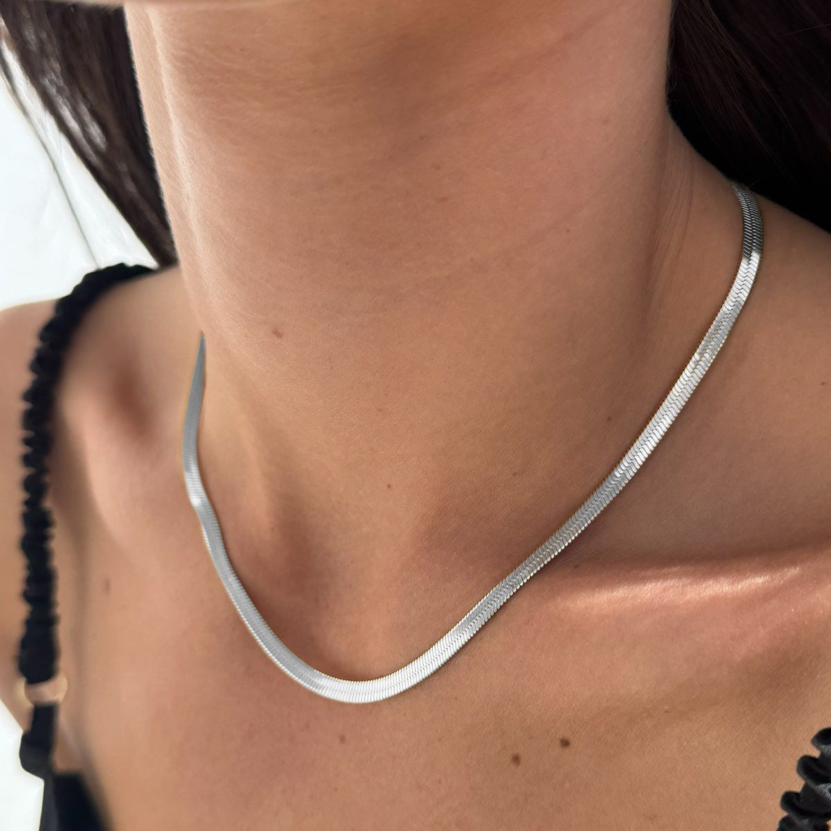Flad Slangekæde Sølvfarvet 4mm