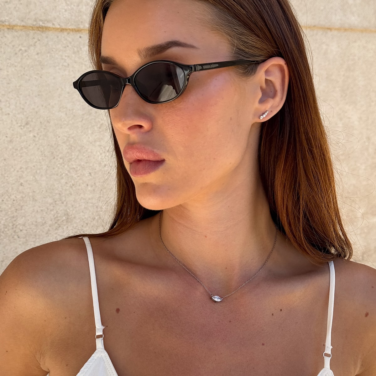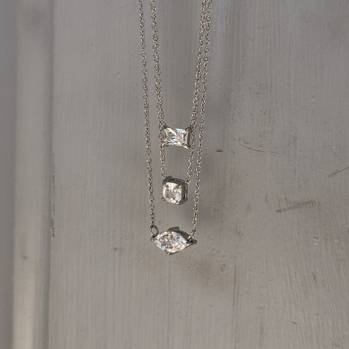 Halskæden er oplagt at style sammen med krystal studs, hvor de samme slibninger går igen. Kombinationen skaber et gennemført og sofistikeret udtryk – uanset om du vælger et enkelt par klassiske studs eller leger med flere huller i øret for et moderne mix.