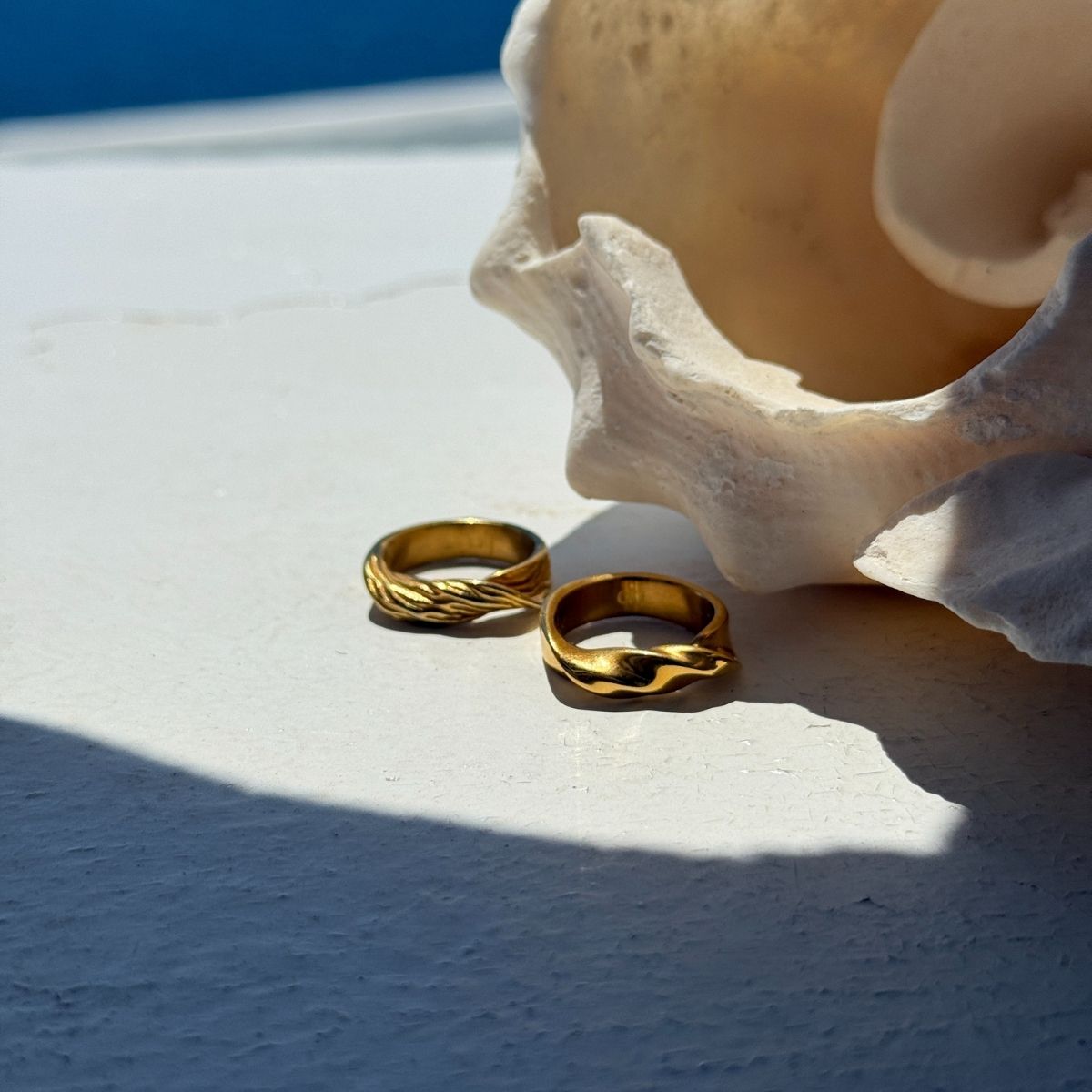 Statement-smykkerne i kollektionen inviterer dig til at tage plads. De er skulpturelle, men stadig organiske. De bevæger sig med kroppen og fanger lyset, ligesom vinden fanger alt i sin vej – let, men kraftfuldt.