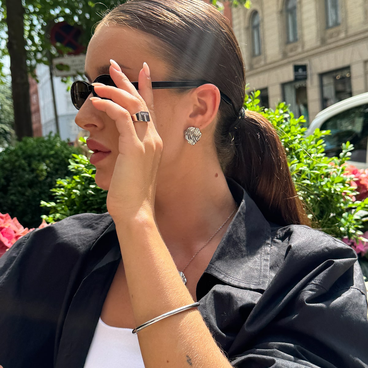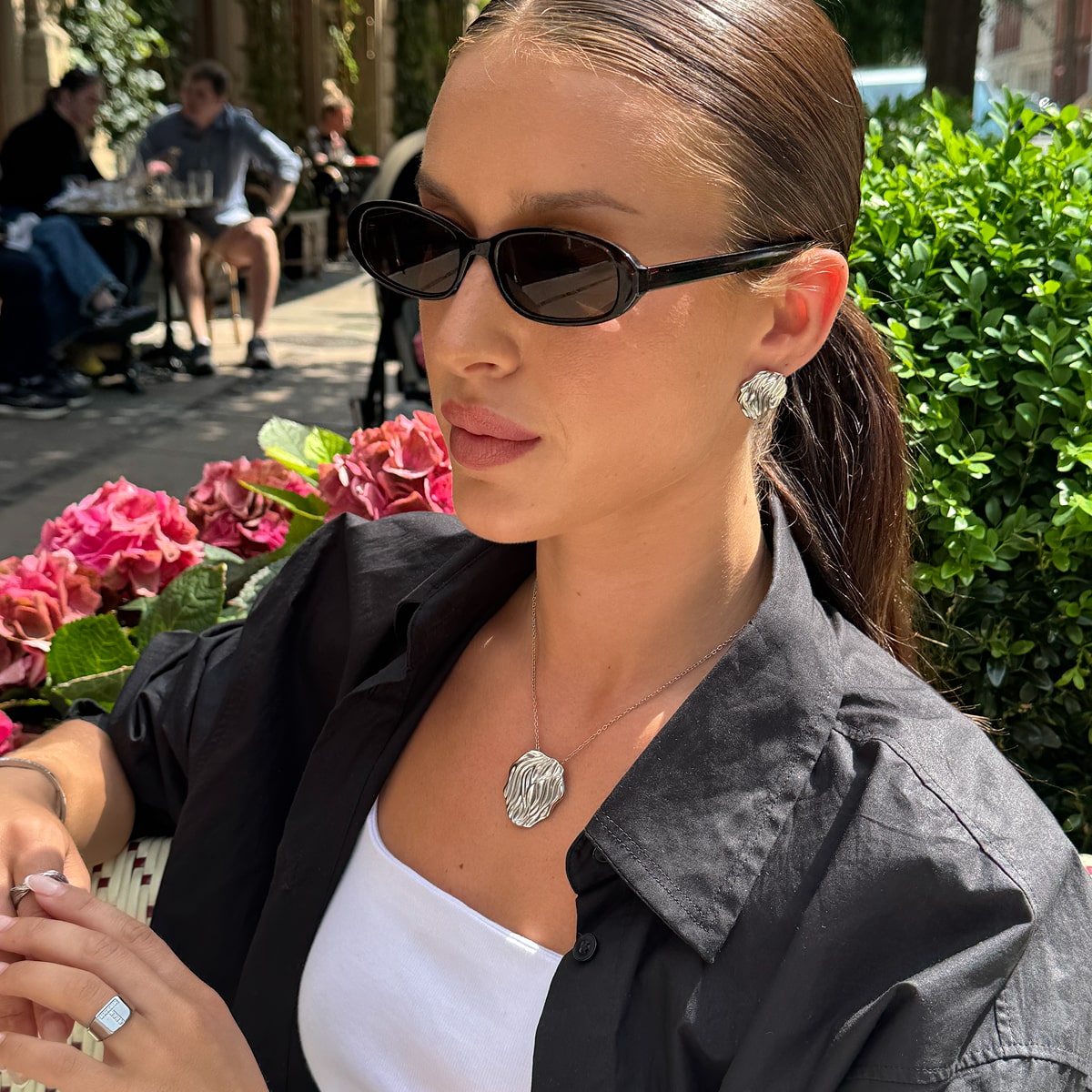 Statement-smykkerne i kollektionen inviterer dig til at tage plads. De er skulpturelle, men stadig organiske. De bevæger sig med kroppen og fanger lyset, ligesom vinden fanger alt i sin vej – let, men kraftfuldt.