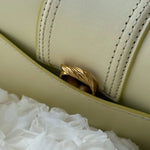 En fortolkning af vindens evige kredsløb – en ring, hvor begyndelse og slutning smelter sammen i en blød, organisk bevægelse. Ringen er både enkel og kompleks – den har en klassisk rund form, men med en kunstnerisk twist, der giver kant og dybde uden at miste sin lethed.