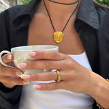 Til en sort dinner-dress og samme smykke med snor om halsen til aftenens vin i solen, hvor du skaber dine sommerminder.